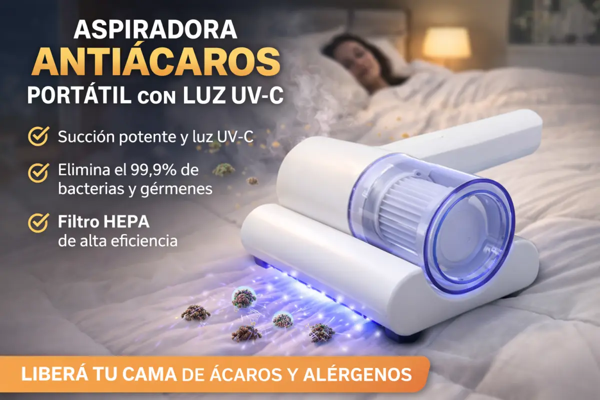 🛏️ Dormí mejor y cuidá a tu familia con esta aspiradora portátil antiácaros de última generación. Diseñada especialmente para colchones, almohadas, sofás y alfombras, elimina️ elimina ácaros, polvo y bacterias invisibles que afectan tu descanso y tu salud.