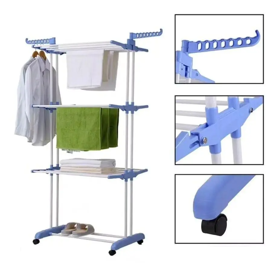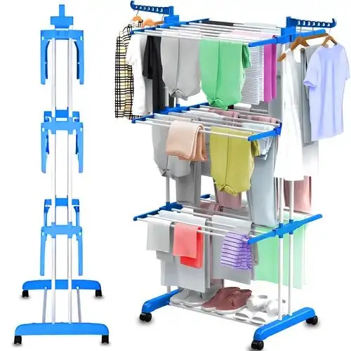 🏡 Secá más ropa ocupando menos lugar con el tender vertical de 3 niveles, ideal para departamentos, casas con poco espacio o uso interior y exterior.